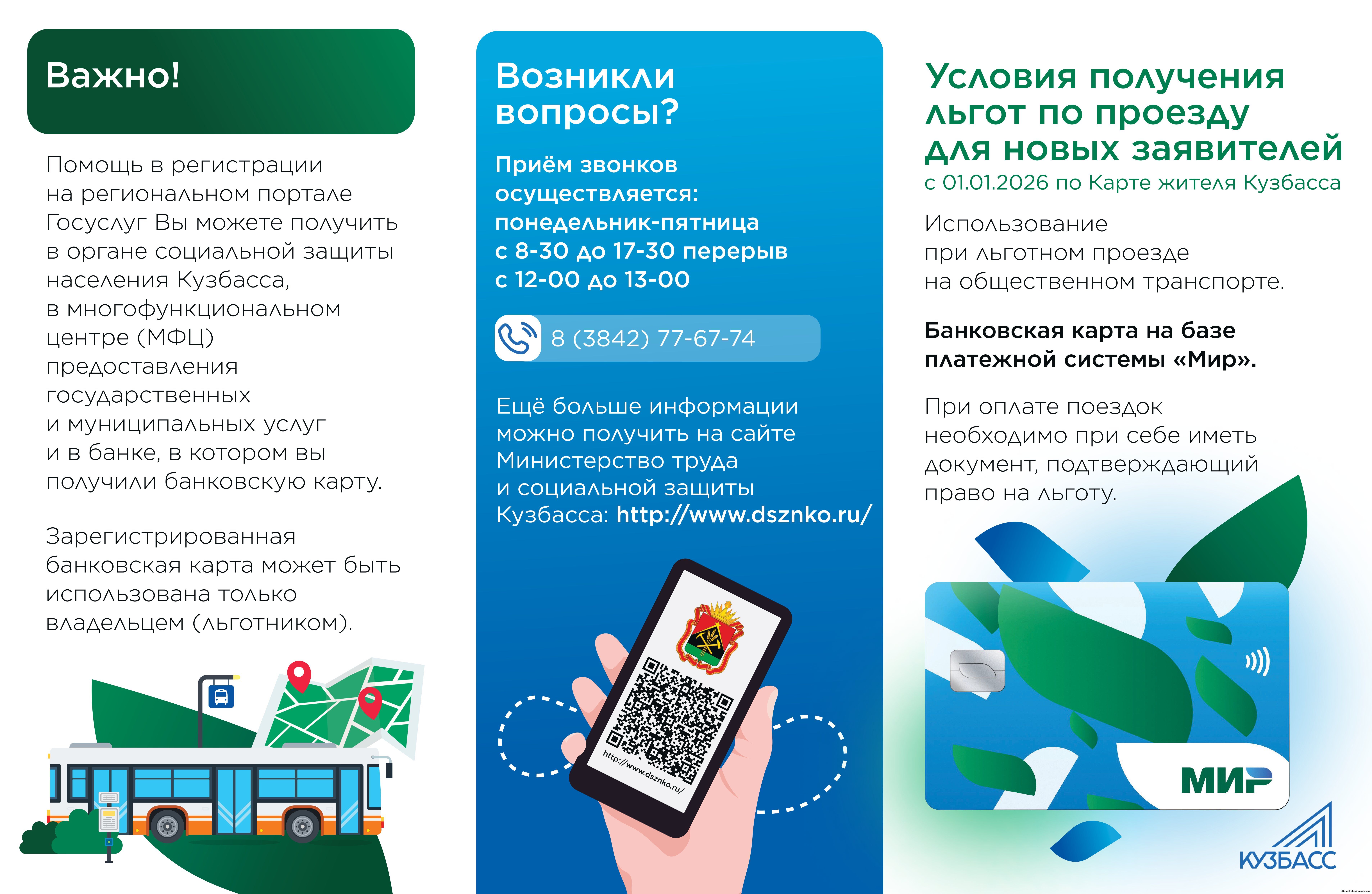 с 1 января 2026 года для льготной оплаты проезда в общественном транспорте начнет действовать сервис «Карта жителя Кузбасса».